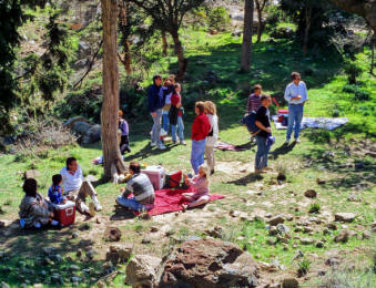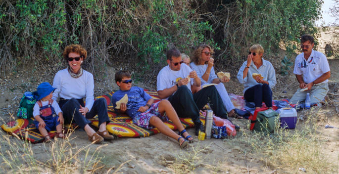 Picnic on the way to Abha As this was the holy month of Ramadan, all the locals were fasting during the day. We were caught buying bread in a local town and the police escorted us out in case we decided to eat it in public. We ended up hiding in the woods to eat our picnic.