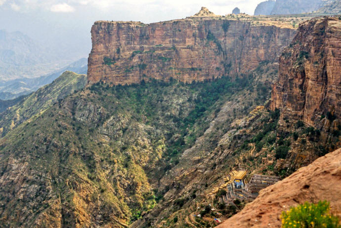 Team Walk around the National Park around Mount Sodah (Sodah is Arabic for "black"). Another great attraction in the area is Habalah or otherwise known as the "Hanging Village". The name Habalah comes from Arabic word "habl" meaning "rope". The inhabitants had to reach their village by rope ladders. Now a cable car takes tourists down. This tribe had originally been spotted by a helicopter working for a mining research centre at the foot of perilous cliff. This village was inhabited until very recently and was home to a group of people who enjoyed the security of literally living on a cliff face. Apparently they first came here whilst fleeing from the Turks.