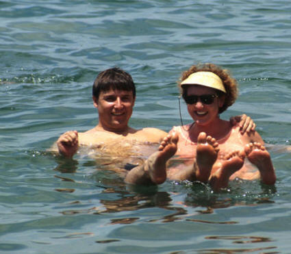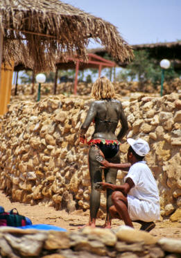 Floating like corks in the Dead Sea The Dead Sea Mud is very healthy (or so he told her...) I remember a trip to the Dead Sea when I was 13 but nothing prepares you for a gentle walk into the sterile, salty water. As the water reaches your waist and you are unceremoniously popped up like a cork, no longer able to stay on your feet. So long as you have no cuts, nicks or grazes (which string like mad in the heavily salted water) this can be a very relaxing experience. Locals sell buckets of Dead Sea mud, which has supposed health properties, and will even apply it to you as part of the service.