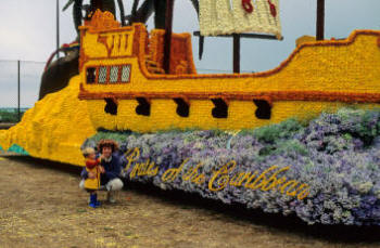 Light house Flower Festival Float We were in Jersey for their annual Battle of Flowers. Each village submits a float to the competition which is made from local freshly cut flowers. These were very artistic and on a huge scale. Apparently contestants work through the night to deck the floats with flowers so that they don't wilt before the competition.