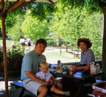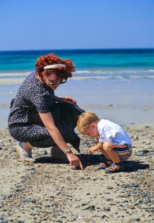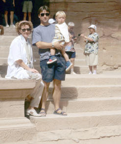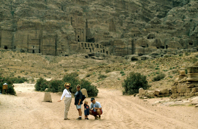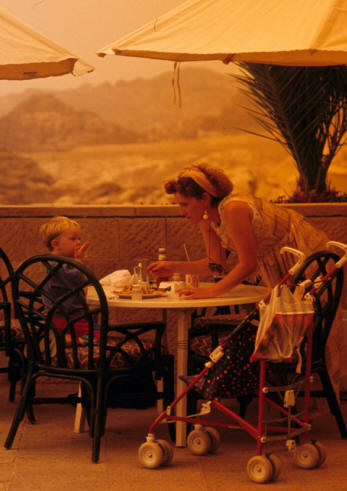 Petra A hard day for a little boy. Contrast the friendly Jordanian border guards with the Saudis on our return journey. The car was completely stripped of its luggage and seats by Saudi Customs; they then let a couple of poorly trained dogs slobber all over the upholstery whilst smelling for explosives or drugs. As Clair and her friend were pregnant and tired they stayed in the car whilst I processed their re-entry visas and passports at the immigration building. I managed to do this without a single Saudi official looking at them or even asking to see them. I could have smuggled half a dozen people into the country for all they knew. Summer 1996 - Tax exiles in Jersey