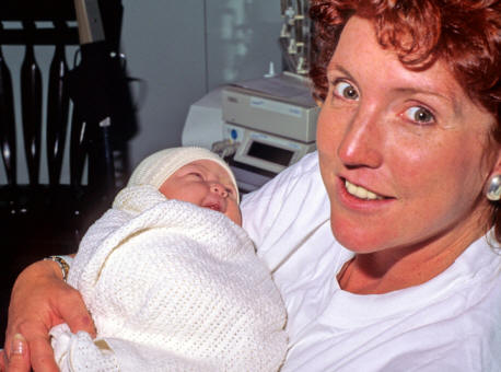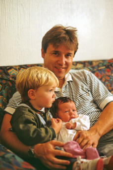 Edward converses with some ducks... I see sea shells Clair was 8 months pregnant on our arrival in Jersey and as we had to stay a month we didn't know where we would be for the birth. Just in case we alerted the local hospital on Jersey and also a hospital in Doncaster, where we planned to stay in a spare house of Clair's mother's after our tax exile time was over. With our stay in Jersey I had enough days outside the UK to qualify for tax free status and was able to return to England with Clair just before her due date. We arrived in Doncaster without Clair dramatically going into labour on the Car Ferry or half way up the M1. However another strange UK tax rule stated that I also needed to be out of the UK on the anniversary of my first leaving. As this anniversary date was close to Clair's expected delivery date there was a chance I would have to miss the birth. As it turned out Verity came into the world a day before I had to leave the country again. The Birth of Verity - August 1996Our Verity came into the world at 10.30pm on 27th August 1996 during a thunder storm.