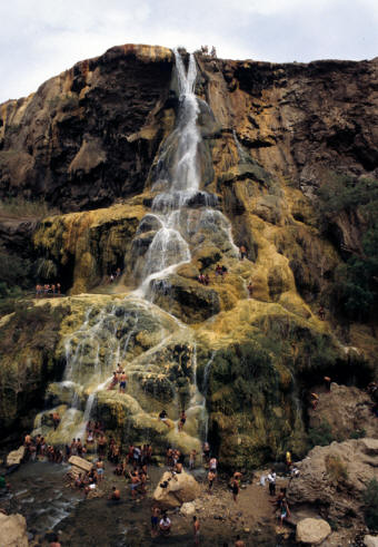Natural Hot springs and Waterfall, Ma'in "Would Sir like Ketchup with his chips?" The natural hot springs in Ma'in appears to be an all male affair. No women had the nerve to strip off and join the men. The water is so hot it is only just bearable to touch.
