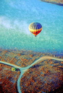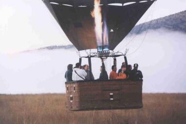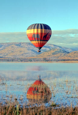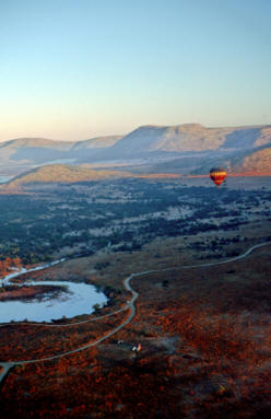 Dawn balloon trip We rented two hot air balloons for a fabulous dawn trip - dawn because the bush air is too warm for a hot air balloon to rise in the heat of the day. It gave us some truly spectacular views of the South African bush. The photos of the second balloon I took from our own gives an idea of the vastness of the landscape we sailed over. For this it was well worth getting out of bed at 4.30am.