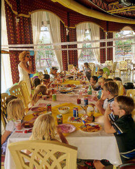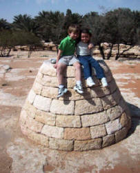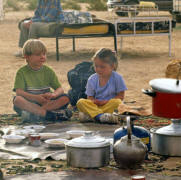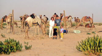 Edward's birthday Party Mud Hut Village Summer 2000 - ParisSummer has finally started with the temperatures hitting 40°C (104 °F). They will now rise inexorably towards 50°C (122°F) . It is a very dry heat and not so much uncomfortable as dangerous. Desert trips are conducted early in the morning with swimming the only outside option during the middle of the day. Clair and the children will return to the UK from the end of July to early September to avoid the worst of the fierce heat.