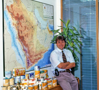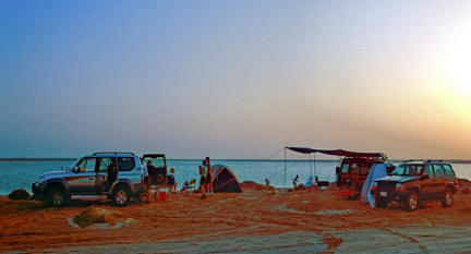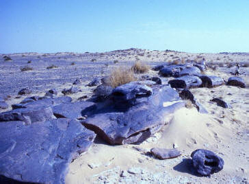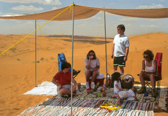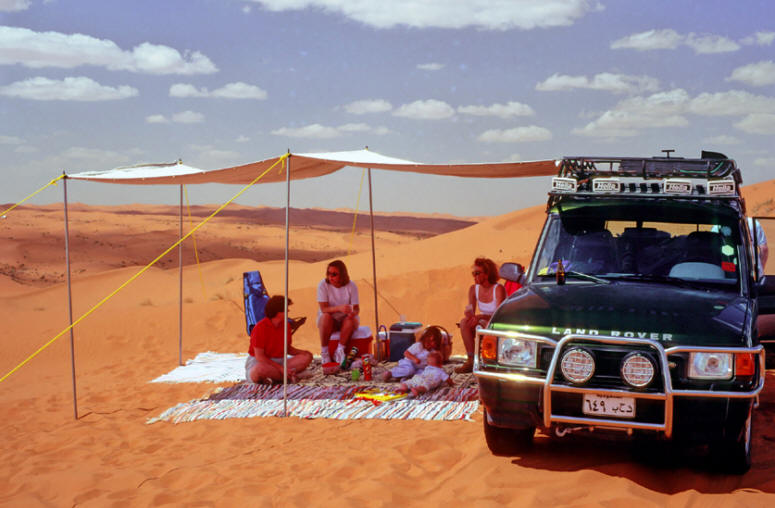 Desert Picnic Spring 2000- Ancient Coral Reefs, Petrified Forests and Sharks TeethThe relatively quiet start to the year so far as travel is concerned (a few routine trips to Chicago, Jeddah, Bahrain and Al Khobar) has allowed us to explore some more of Saudi. This includes hammering four wheel drive vehicles up and down bright orange sand dunes the size of mountains near Riyadh and a picnicking near a spectacular petrified forest. Here we can see pre-historic tree trunks and even leaves which are littered over a wide patch of desert. Other interesting desert areas include ancient coral beds and areas where you can pick up sharks' teeth from the desert floor. Both these areas are now hundreds of miles from the nearest ocean. It struck me that the ecology of the planet has changed much in the last few thousand years without any help from mankind. This shouldn't surprise us, as Saudi Arabia, which is nearly all desert now, is literally floating on oil - the remnants of ancient tropical forests. It was clearly once very wet and fertile here.