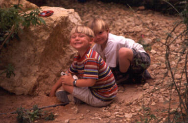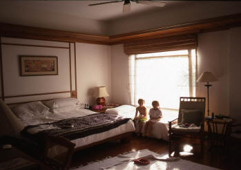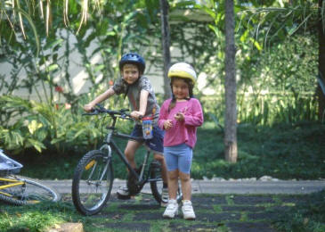 Edward enjoys the view Verity's First Day at School Verity turned four in August and joined Edward and about 700 other pupils for full time education at the British School in Riyadh in September. They are both very happy here and have friends from over 10 different countries. They can ride their bikes to school, despite being only 4 and 6, because the school compound is adjoining our own. Holiday in Thailand - December 2000