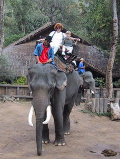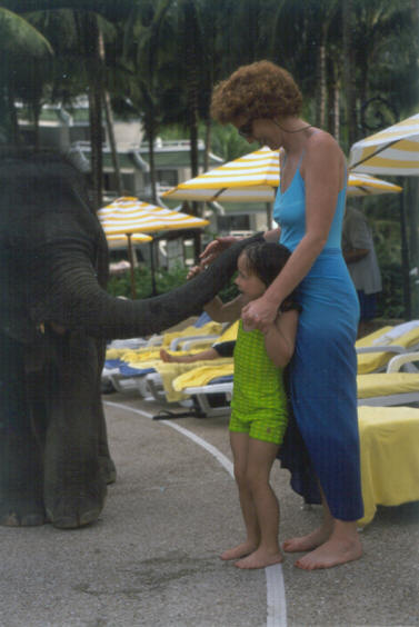 Meridien Hotel by Night Finally we managed a brief stay in Bangkok before catching the flight back to London for my mothers 60th birthday celebrations and then Christmas....  Another elephant ride.... Royal Palace, Bangkok . ....and some rare snowfalls in England