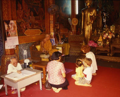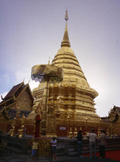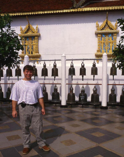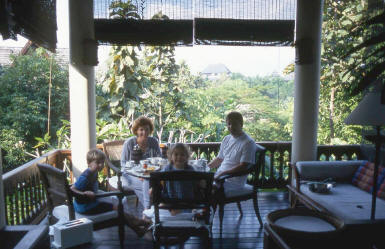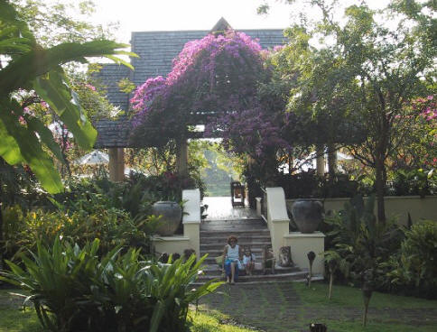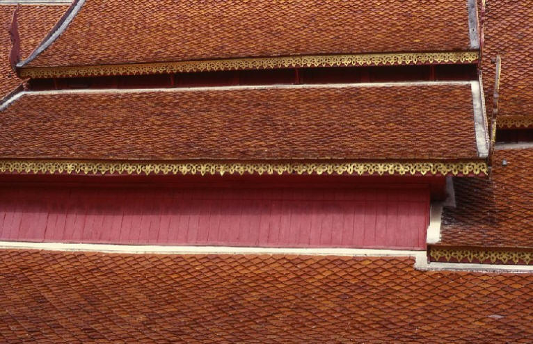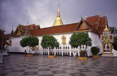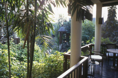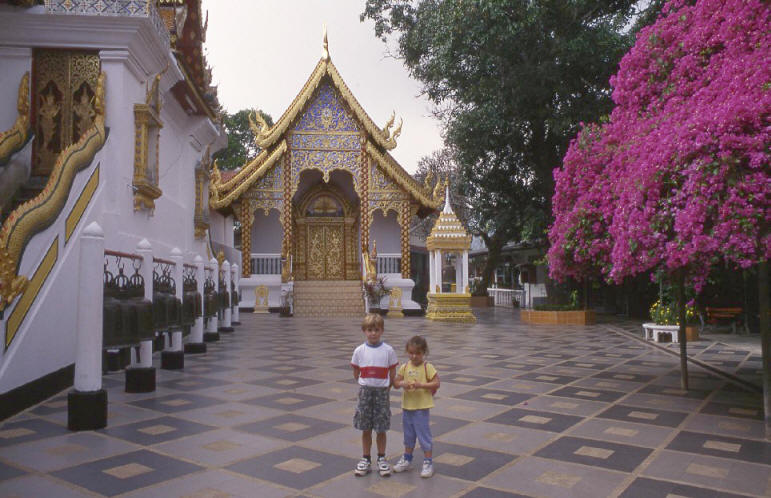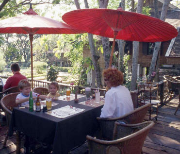 Thai Style roofs at Royal Palace, Bangkok December 2000 and we decided to have a break in Thailand on the way back to the UK for my mother's 60th birthday celebrations. First stop was the gorgeous Four Seasons Resort in Chiang Mai. Here we were lucky enough to have a private pagoda type suite with our own secluded balcony where we had breakfast and most evening meals. The resort is so large that room service is delivered on golf carts.