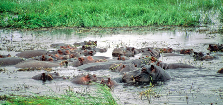 Hippos on The Chobe River - These herbivores kills more people than any other animal in Africa We got in Land Rovers for the afternoon and explored the game park. There were animals everywhere and within two hours we saw hippos, crocodiles, antelope, lions (from a distance of two yards), hundreds of elephants, buffalo......Yes it was like Woburn safari park in England.
