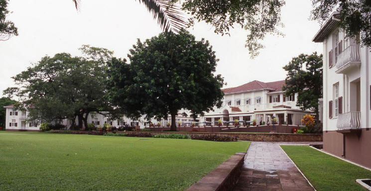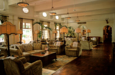 Botswana Safari The Victoria Falls Hotel is magnificent and build by the British in about 1905. As a British expatriate myself I understand the motivation behind building it. As we move around the world we come across three types of foreigner - the "tourist" who is on holiday, never goes anywhere adventurous, likes "the weather" and beaches and stays in Western hotels, eats western food and collects souvenirs and may just as well be anywhere. This individual is always looked down on by the "traveler" who is seen complete with backpack and a Lonely Planet guide of the remote area where they are found. They like to be absorbed into the local culture in gritty, and often grubby detail, sleeping rough and eating rough. The only things they collect are local diseases such as hook worm and cholera. No - for me the British "expatriate" way was much better. Pitch up in the middle of nowhere, steal the country, build a railway rapidly followed by a luxury Hotel and a British Club and then sit on the verandah and admire the view whilst playing Mahjong and drinking ice cold gin and tonics. The Victoria Falls Hotel falls spectacularly into this category. It is a gentle walk to view one of the seven natural wonders of the world before returning for afternoon tea complete with scones and clotted cream on the well manicured lawn. After this, a few pink gins and campari and sodas, then elegant dining under flaming lanterns with Mozart playing delicately in the background - and somebody else running around and doing all the work. Oh yes and make them learn English to save us the effort of learning Bantu.