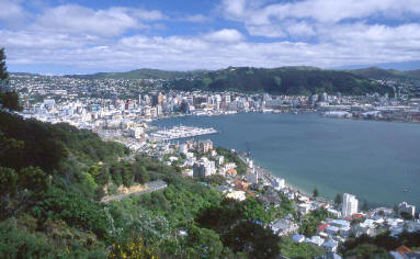 Wellington Harbour. Drag your cursor across the image to view 360° movie Martinborough