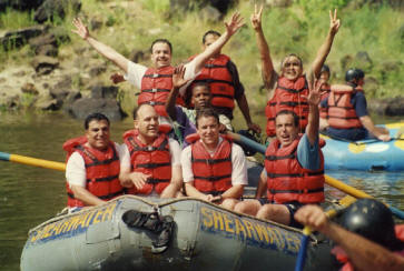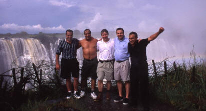View of Lakeshore Drive, Chicago from John Hancock Tower. Discussions have begun about my next move and a job covering our Pacific, Africa and Asia region has been suggested. This would be based at corporate HQ in Illinois, USA. I flew from Saudi to Chicago for the interviews in February and stayed one night before returning to Saudi the next day. The interviews started at 9.00am in Chicago (6.00pm Saudi time) and continued until 6.00pm (3.00am Saudi time). Despite the inevitable jet lag during the final interviews (when I was talking in derogatory terms about the company's financial bias to an accountant who I was convinced was in marketing) they wanted to make me an offer. Offers in my company take a long time to get approval. Business Meeting in Victoria Falls, Zimbabwe February 2001 During this process we had our regular financial review meeting in Zimbabwe. This was a week's team building jolly at Victoria Falls in the British colonial style Victoria Falls Hotel. We spent a day white water rafting on the Zambezi. This was the "team building exercise" which worked nicely apart from the fact that two members of the team nearly drowned when our raft overturned on rapid 18, ominously nicknamed "Terminator Two". Being in Africa we had a "comprehensive" safety briefing which involved the staff telling us to "hold onto the boat if it turned over - and it will turn over" they said. If you can't hold on they suggested "putting your feet downstream" as we rush through the rapids (prevents fractured skulls) and wait until you get to a calm pool of water at the other side. We were then urged to swim immediately to the edge as the crocodiles which infest the Zambezi like to wait in the pools. I had this image of large crocodiles waiting at the end of each rapid with their mouths wide open waiting for a hapless victim to be propelled right in. Anyone surviving the rapids still had a chance of perishing dramatically from a coronary on the long climb out of the gorge. This was a near vertical climb in hot tropical weather and many of my colleagues only exercise by walking from their front door to their car. All in all it was a great day amongst some of the worlds most spectacular scenery.