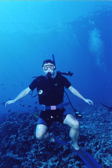 Wellington Harbour, New Zealand - November 2001 Travel is as hectic as ever. I had business trips to Hawaii, Dubai (twice) Istanbul (again) and Cairo (again), where I accompanied some colleagues to the Great Pyramids at Giza - my third such visit. In October I had the opportunity to visit some new countries with a great trip to Australia and New Zealand. I was particularly impressed with the food and wine in both countries. A memorable meal in Sydney was at the MG Garage , which is what it sounds - an MG Garage. Sports cars are actually on the menu and the tables are strategically placed between gleaming showroom models. We ate next to a brand new $375,000, British racing green, Aston Martin DB7 Volante. It's a good sales ploy. After gazing admiringly at it for all of three hours I nearly bought it. Fortunately, despite the excellent wine, I was still sober enough at the end of the evening to realise that my company would probably notice it on my dinner bill. We had a cruise around Sydney Harbour, which reinforced what I'd heard many times before - that the quality of life in Australia is second to none. Great weather, high quality living, good education, good arts, the right sports, as well as being relatively crime (and terrorism) free. New Zealand is beautiful if a little remote. I had a weekend there and visited some of their excellent vineyards, tasted the produce and enjoyed the remarkably clean air. We also visited some film sets of the soon to be released film "Lord of the Rings". I also managed a visit to my fourth cousin, twice removed, who lives in Wellington. I met her on a genealogy web site some months before. Actually I was online trying to work out how to subscribe to AT&T's digital phone service and ended up at the genealogy site by mistake. She was very hospitable and gave me a tour of Wellington and took me home to meet her husband and cook some local delicacies of Whitebait followed by a Kiwi fruit Pavlova. The Kiwis themselves were wonderful and all apologized for being so provincial and parochial despite all having traveled extensively in Europe, Asia and in many cases China. I contrast this with Illinois. When visiting CompUSA to buy a network card a local who thought I was an Australian accosted me. I apologised and said I was English to which he looked very confused. "You're British", he said, "we speak English, you speak British!" I had my second trip to Hawaii this year in November. Like the last one it seemed to be mostly about eating, drinking and scuba diving. The weather was glorious, the water crystal clear and the hotel Four Seasons. This was the annual global General Managers "thank you for making this company so great" beano. The gala dinner was on a Saturday night, which made the company less guilty about making it so much fun, but this was little consolation to Clair, who wasn't invited.