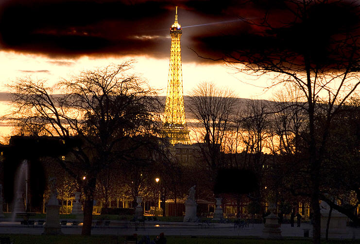 third scale Eiffel Tower straddling it with a restaurant at the top. Luxor