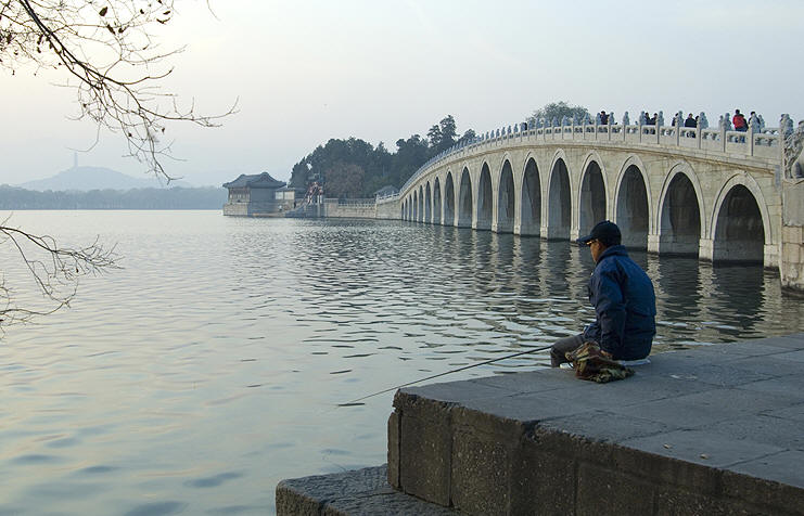 Lone fisherman in Summer Palace grounds