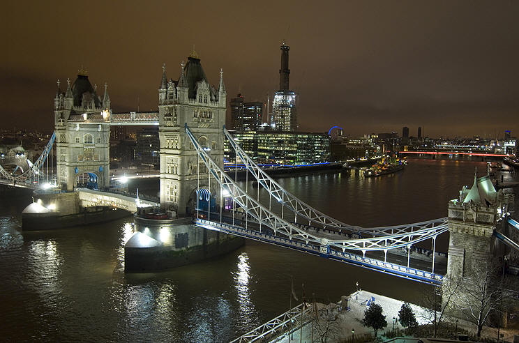 Tower Bridge and a very cold river Thames - London,