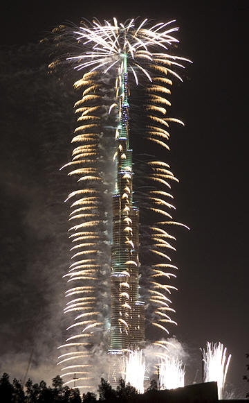 Burj Khalifa fireworks display from our garden - Dubai,