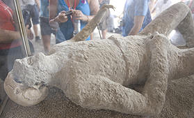 Casts of volcano victims in Pompei - they were probably