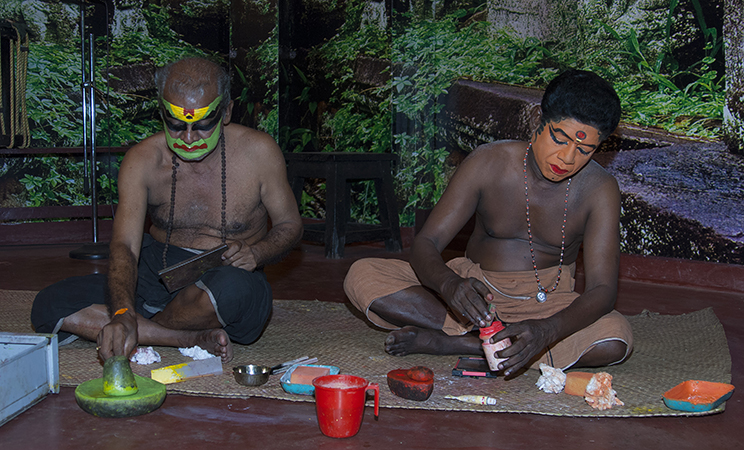Keralan actors applying makeup.