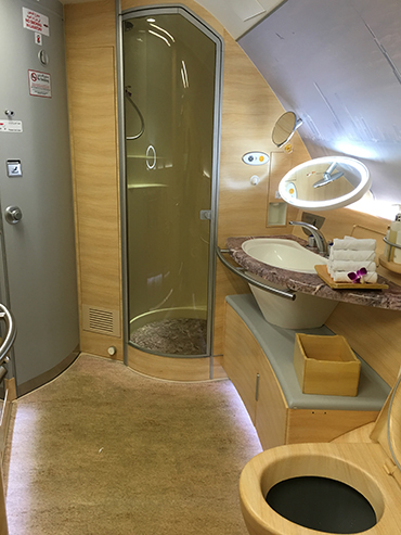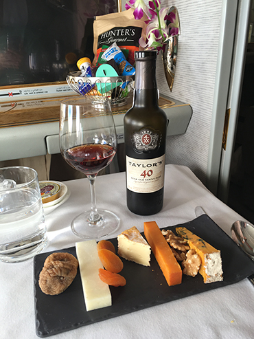 Emirates First Class Bathroom with Shower Excellent British Cheese Course with 40 year old Port.